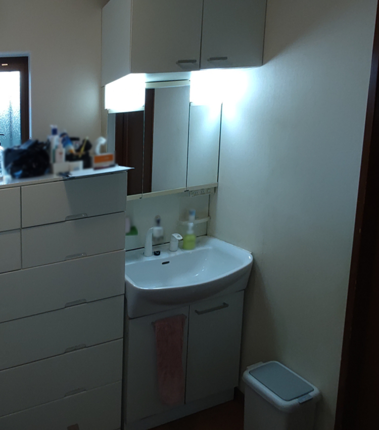 ・洗面化粧台の収納オプションで、リフォーム前の収納棚を撤去し脱衣場空間が広く使えるようになりました。