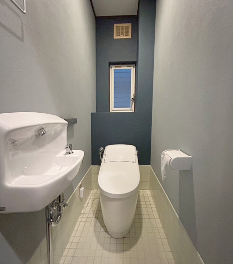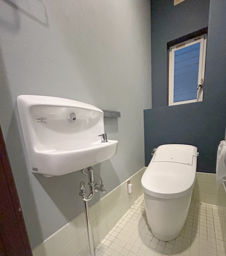 ・以前もリフォームをして頂いたお客様で、前々からトイレは相談をうけておりました。前回のバスリフォームの時にはアドバイスができなかったクロスの選び方についてとてもよろこんでいただけてこちらもうれしかったです。