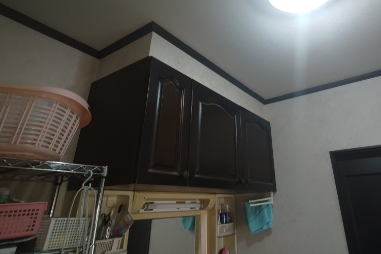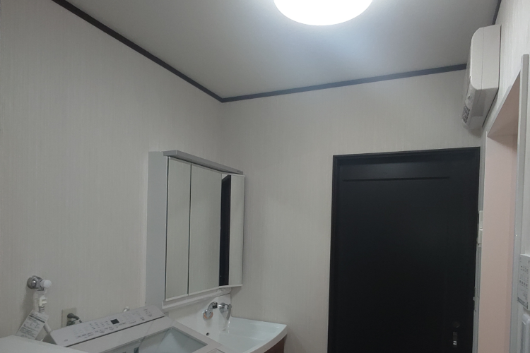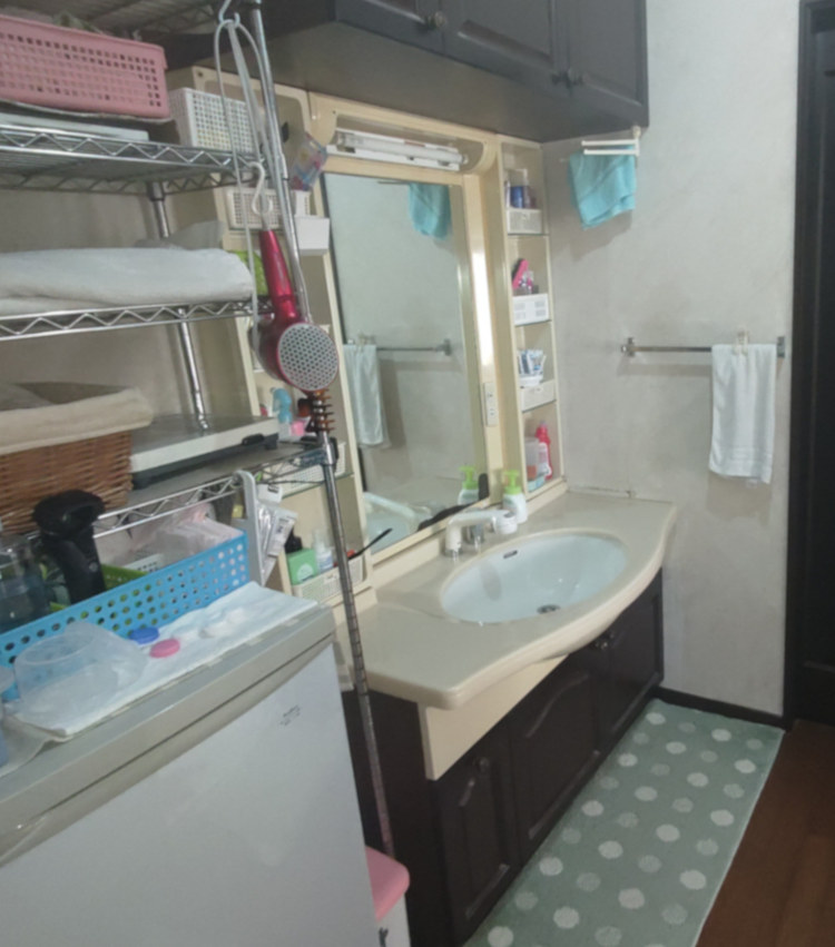 ウォールキャビネットを撤去することで広く感じる脱衣所になりました