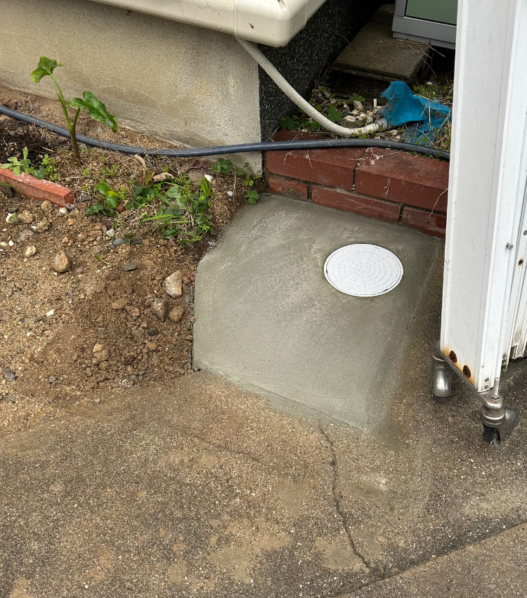・今回敷地外の下水桝フタが割れていて、お客様宅のフタをそのまま入替することができそうだったので入替用とフタをあけると、排水が詰まっていてもうすぐあふれそうな状況というのがわかって、該当のお客様宅にお声掛けしたところ、詰まりを掃除されていました。フタは割れていないものを入替できたのでよかったことと、外に出た時にトイレのようなにおいがする原因がここであったこともわかってお客様も安心されておりました。