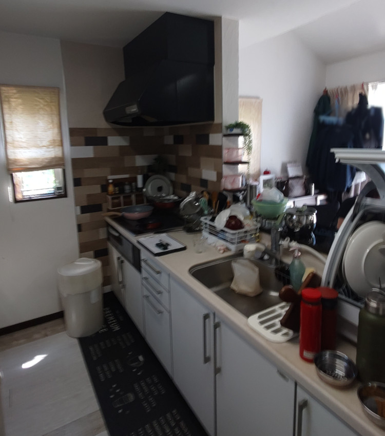 ・コンロ前面の壁とリビング側のカウンターを撤去したので、部屋が広く明るく感じるようになりました。