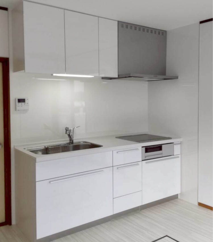 キッチンの幅をすこし大きくして、足元にあった床下収納庫の位置を出し入れがしやすいように移動しました。
