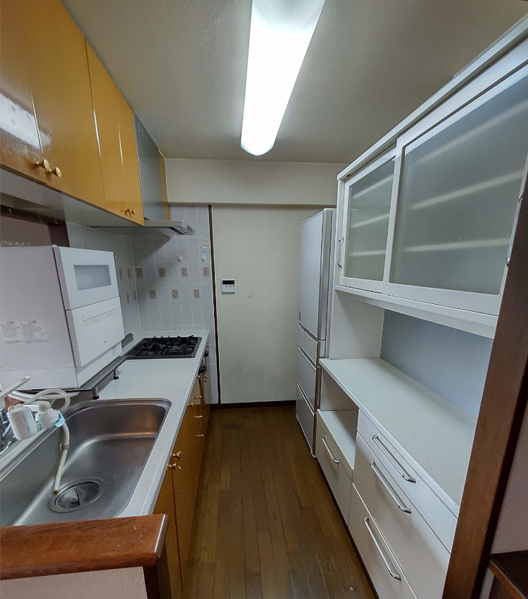 キッチンの収納量が増えるので、食器棚を撤去。ゆったりとしたキッチンスペースができました。