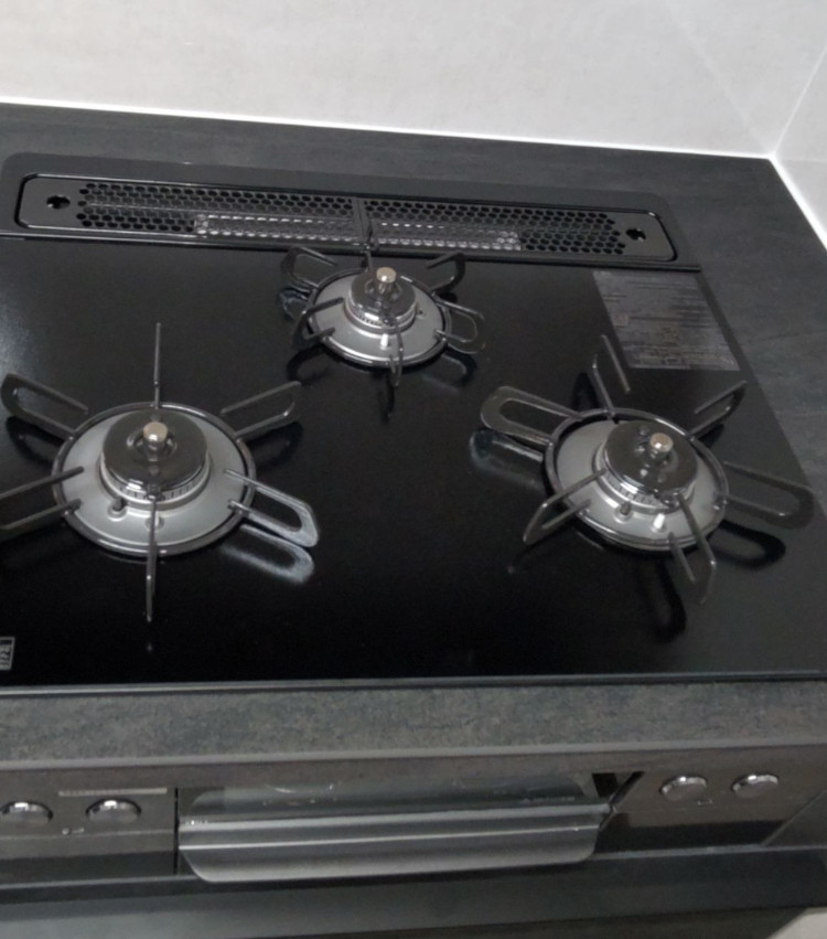 新しいビルトインガスコンロはデコボコが少ないので、お手入れが軽減されます。