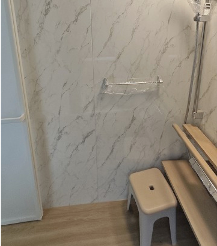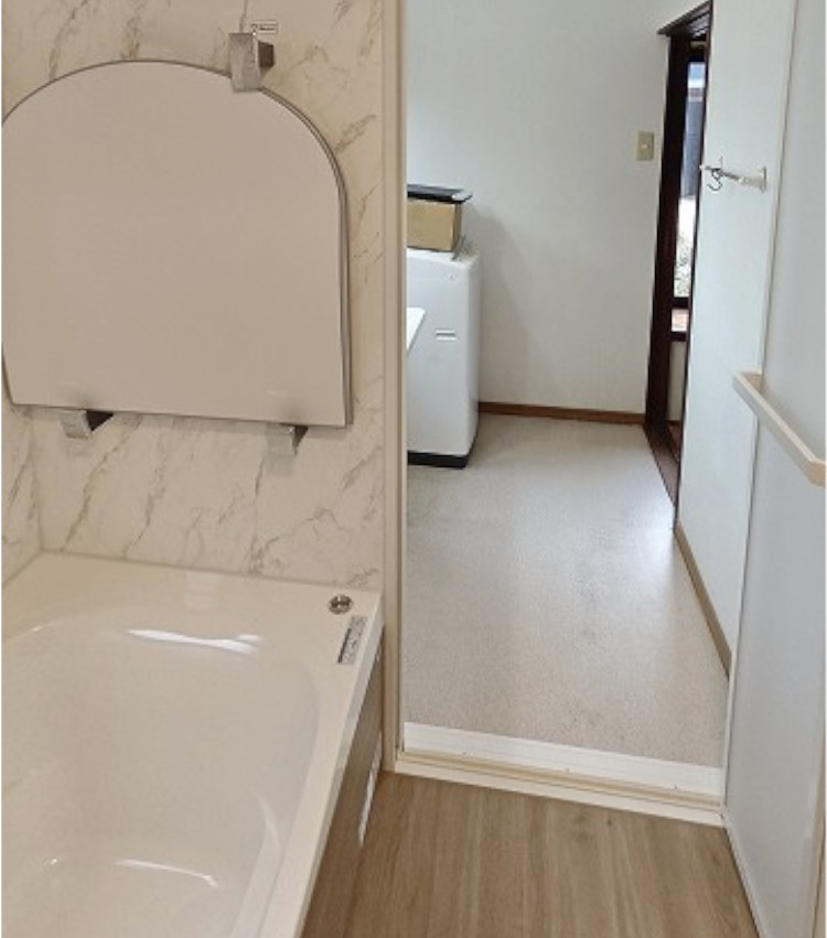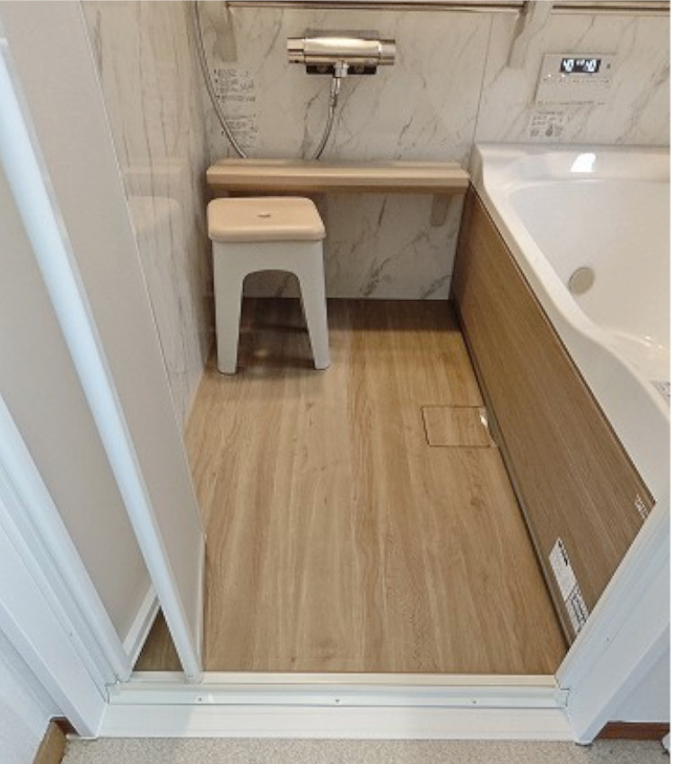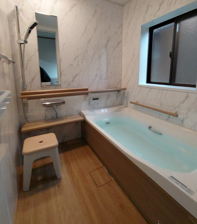 ・浴室は、洗い場や浴槽が滑りにくく、安心して入浴できるようになりました。浴室正面にある手すりも非常に便利です。