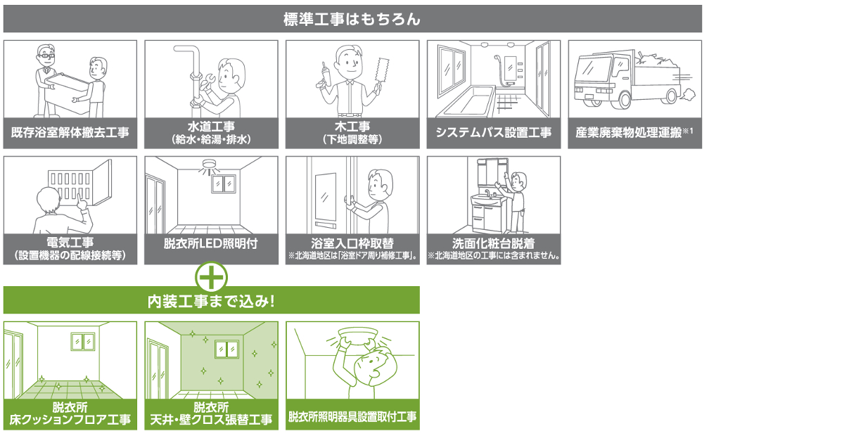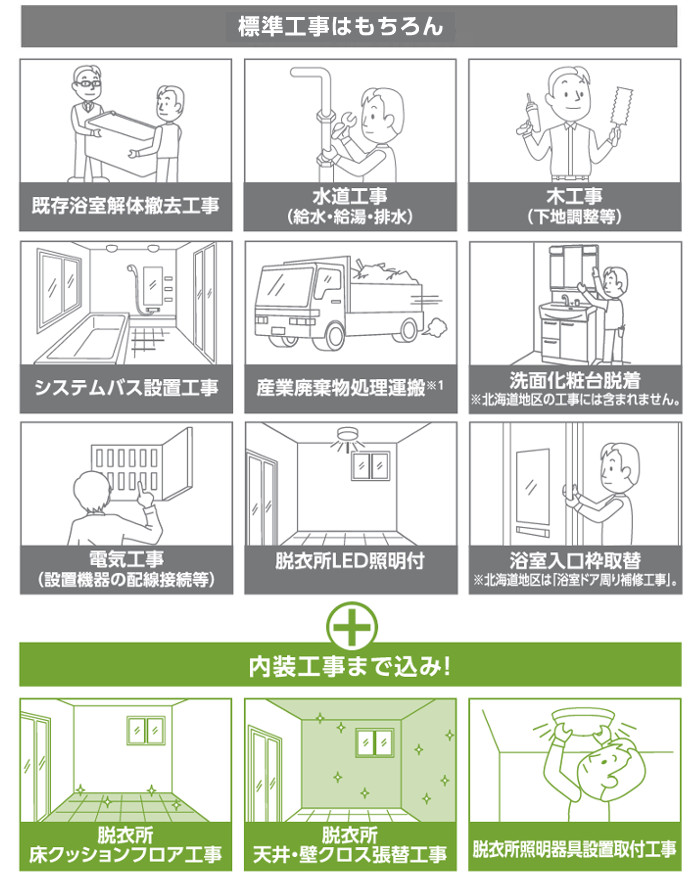 脱衣所の内装工事も込み!更に10年あんしんサポートも!
