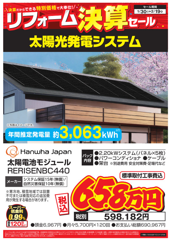 「光熱費対策に太陽光発電システムのご提案」リフォーム決算セール開催中!