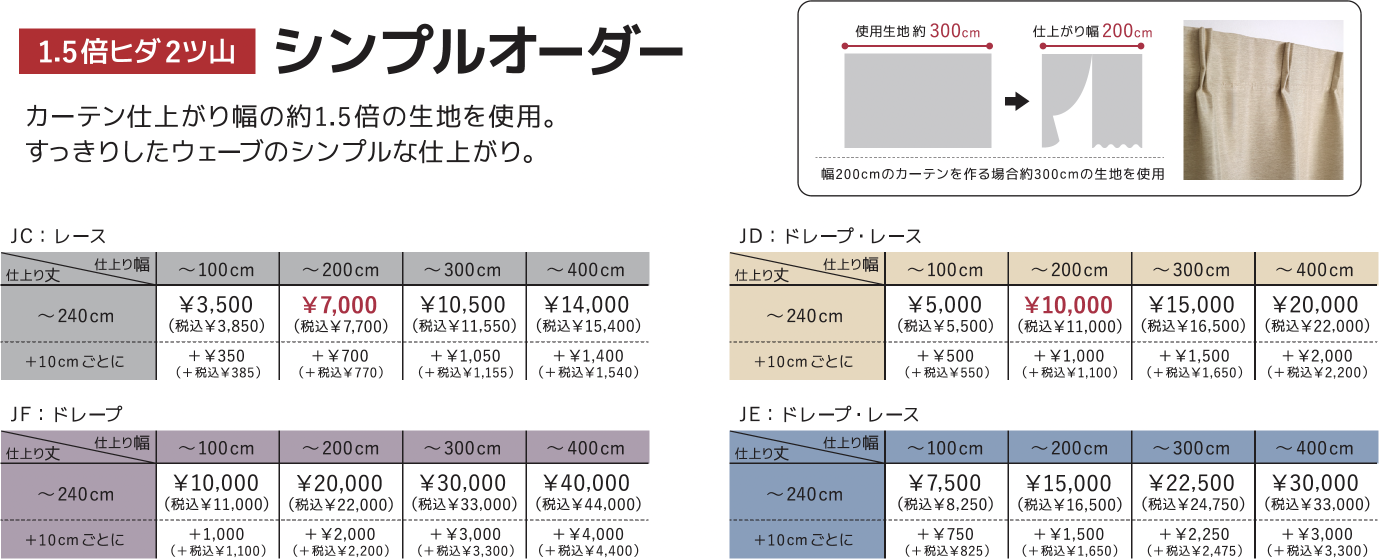 オーダーカーテン価格表 専門スタッフによる採寸・取付工事。カーテン生地の無料レンタル実施。
